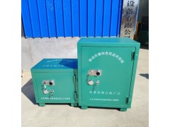 移动火工品柜的外体是采用6mm防爆钢板,内置10mm绝木板,内部铺设抗震防静电阻燃毡。因移动火工品柜是放置在室外露天使用,为增强其防盗作用,柜体的锁具采用的是GA机械双锁,即两把机械锁和一把三位密码机械转盘锁。其中,爆破员保管1号钥匙和密码,库管员或安全员保管2号钥匙,共同打开后,才能领取